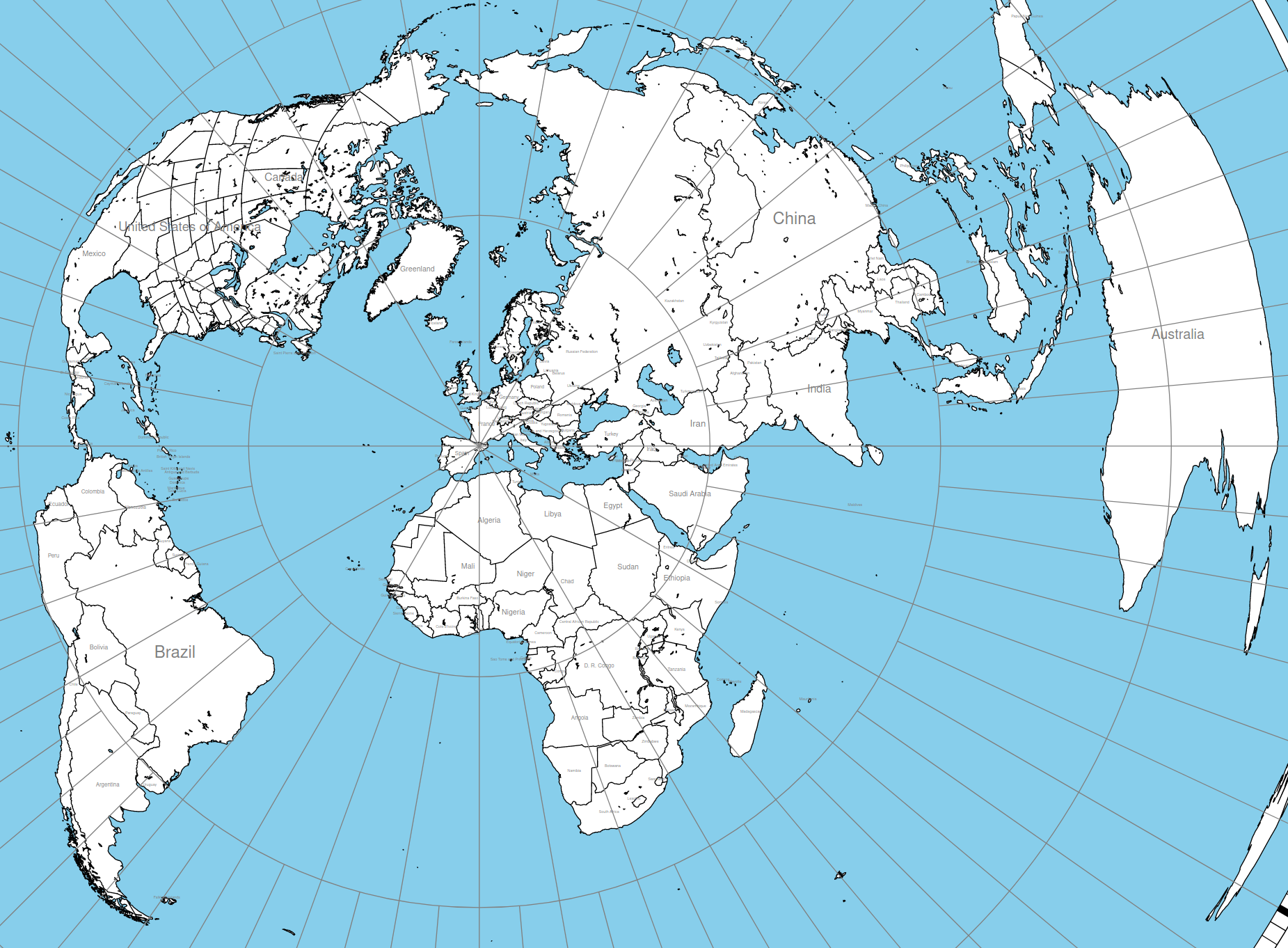 Mapa azimutal amb centre JN02lf (Pallars Jussà )