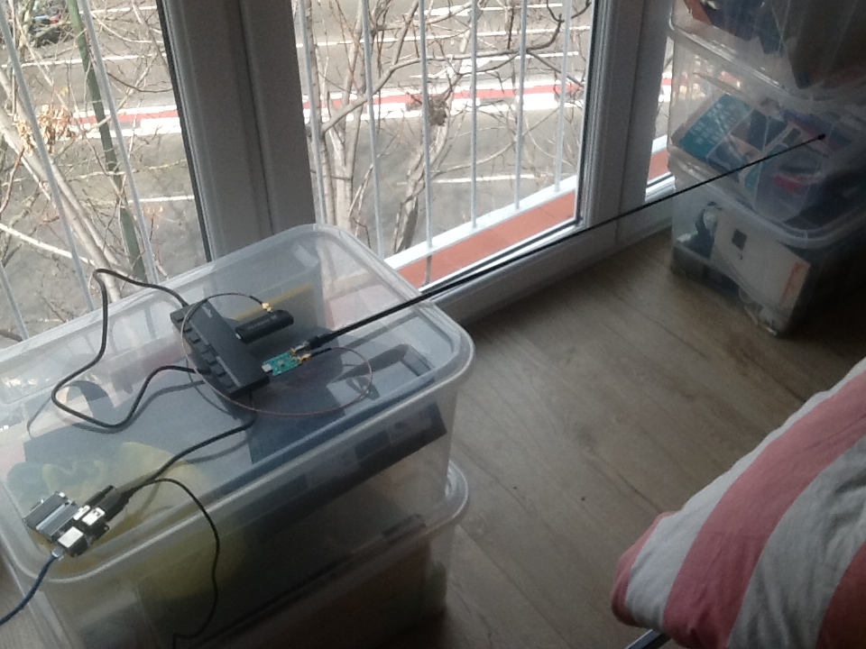 antena telescopica 1m conectada a la entrada de 50R del receptor